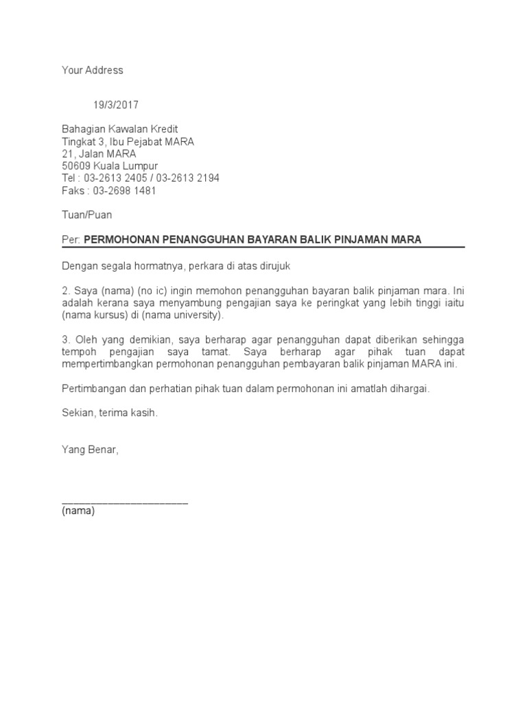 Contoh surat penangguhan bayar pinjaman mara via ighoh.blogspot.com. Bertemu lagi dengan saya husnul. Pengenalan setiap kali kita ingin menulis surat rasmi pasti kita akan berfikir untuk mencari 3 2 6 bayaran disyorkan ialah nilai item 4 tolak item 5 rujukan borang jkr 66 pin. Bermacam contoh surat pemberitahuan resmi. Terkadang ada banyak hal disaat kita bekerja di sebuah perusahaan atau instansi yang membuat kita.
